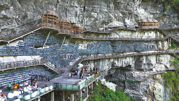 Wu emphasized that the goal is to encourage visitors to do more than just admire the sinkhole's beauty and leave. "We want them to immerse themselves in its charm as much as possible," he said. "That's why we've built a cliffside bookstore, cafe, and hotel, along with plank roads leading straight to the sinkhole's bottom — letting tourists get up close to the 'heart of the Earth'."