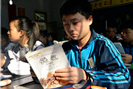 An employee counts renminbi and dollars?at a bank in Qionghai, Hainan province. [Photo/VCG] |