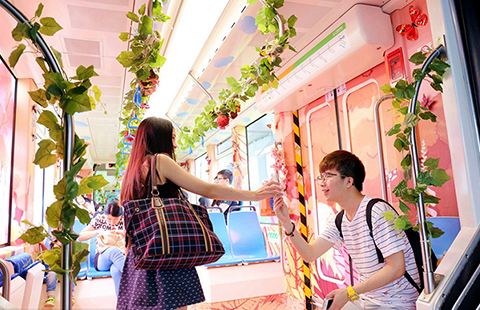 Colorful subway trains in China