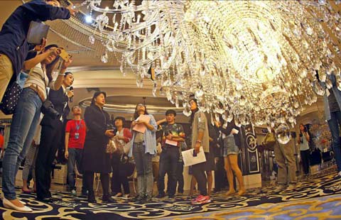 LeEco CEO Jia Yueting, left, and Vizio Inc CEO William Wang shake hands at a news conference in Los Angeles, where it was announced that LeEco had acquired Vizio for $2 billion. [Photo/Agencies] |