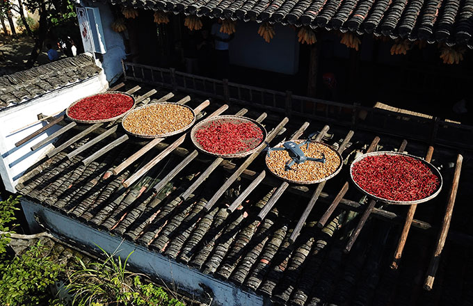 An actress dances for tourists on the city wall of Taierzhuang ancient town in Zaozhuang, East China's Shandong province, on Oct 2, 2017. [Photo/VCG]