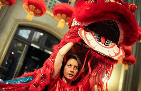 Ed Sheeran celebrates with Russell Crowe after receiving the British Album of the Year award at the BRIT music awards at the O2 Arena in Greenwich, London, February 25, 2015. [Photo/Agencies]