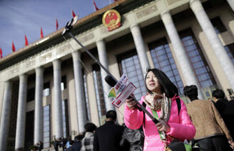 A Chinese moviegoer walks at a branch of HBC (Huayi Brothers Cinema) of Huayi Brothers Media Corp in Shanghai, Dec 19, 2013. [Photo/IC] |