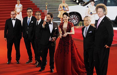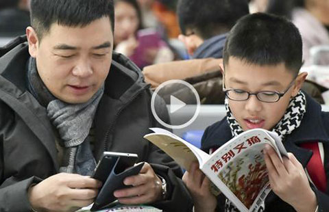 Children's fiction writer Cao Wenxuan (left) presents books to children in Urumqi, capital of northwest China's Xinjiang Uygur autonomous region, April 23, 2016. Cao won the Hans Christian Andersen Prize 2016 at the Bologna Children's Book Fair in Italy on April 4, the first Chinese writer to ever win and be shortlisted in the highest international recognition given to an author and an illustrator of children's books. [Photo/Xinhua] |