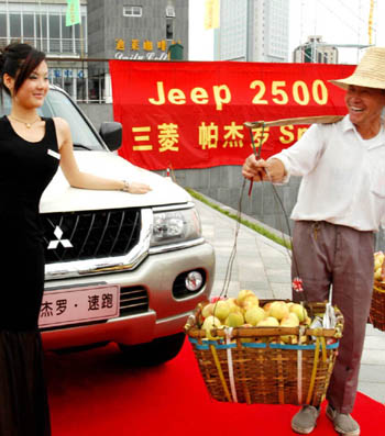 talks with a car model on June 27, 2003 , at the Ningbo Press and Culture