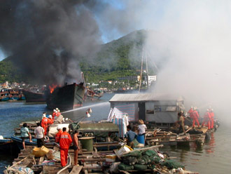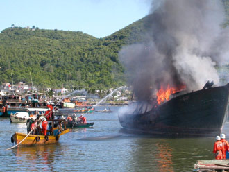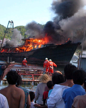 Boat fire in Sanya ( 2003-07-09 06:37) (newsphoto)