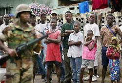 The first troops were expected Monday in helicopters, from bases in neighboring Sierra Leone. Nigerian Brig. Gen. Festus Okonkwo, the future force's commander, said planners weren't sure how many troops they could get in on Monday, or whether there were enough aircraft overall. "We are going in with as much troops as possible," Okonkwo told reporters late Sunday in Sierra Leone. "We know that the situation is bad in and around Monrovia." The first forces would only secure the now government-held airport, Okonkwo said. The airport is about a 45-minute drive on a government-held road from the capital, where fighting has raged daily between President Charles Taylor's fighters and rebels battling to overthrow him. Okonkwo said he expected no attacks upon Monday's deployment, and said he had called upon both sides to tell them to return to their positions at the time they signed a June 17 cease-fire that has been repeatedly broken. About 300 Nigerian troops were to be deployed Monday, but it was unclear whether the West Africans would be able to get that many troops on the ground the first day. They are to be the vanguard of a 3,250-member West African force. On Sunday, a small West African assessment team laying the groundwork for the peacekeepers was gathering generators, food and fuel. Some of the goods were provided by U.S. suppliers through an already-announced US$10 million U.S. support contract for the mission, said Col. Theophilus Tawiah of Ghana, the force's chief of staff. Debt-strapped Nigeria says it needs far more international backing for the mission, expected to eventually cost at least US$2 million daily. On Atlantic Ocean beaches, fishermen and fighters took occasional glances at the horizon - where the U.S. Defense Department said two of three U.S. warships being sent to support the West African peace force waited, newly arrived but out of sight to Monrovia's people. Taylor, a former warlord, pledged Saturday to cede power on Aug. 11 - meeting one demand by fellow African leaders and the United States. Taylor's camp on Sunday hedged on Taylor's recent promises to go into exile in Nigeria - saying that Taylor's agreement to yield power should be enough. "The international community should give him a break. He's made the ultimate sacrifice," by handing over power, Information Minister Reginald Goodrich told The Associated Press. "No one should ask him to do more than that," Goodrich insisted. Taylor has been promising to yield power since June 4, when a UN-Sierra Leone court revealed a war-crimes indictment against him for his support of rebels there in a brutal civil war. The United States has demanded the departure of Taylor, blamed in 14 years of conflict in Liberia that have killed more than 100,000 since 1989, and accused of trafficking and arming insurgents across much of the region. Taylor made, and broke, repeated cease-fires, peace accords and power-sharing deals in the 1990s, often launching attacks on past deployments of West African forces here. Taylor's government said Saturday that Taylor would leave Liberia only when an adequate number of peacekeepers are on the ground, and when the war-crimes indictment is dropped. UN prosecutors are adamant that Taylor face justice, heightening prospects of a standoff with the international peacekeepers and foreign powers. The UN Security Council on Friday endorsed the deployment of the multinational force to Liberia. The deployment is to last two months, and be followed by UN peacekeepers in October. It was unclear whether US Marines, deployed to Liberia's coast in three warships, will ever go ashore. US President George W. Bush administration has insisted that West African peacekeeepers take the lead despite calls from Liberians and leaders from around world that U.S. forces spearhead the deployment. The United States oversaw Liberia's 19th century founding by freed American slaves, and the two countries remained commercial and strategic allies up to the end of the Cold War. On Sunday, intermittent automatic weapon fire - and more occasional explosions at a bridge between rebel- and government-held sections of town - could be heard in Monrovia, sending people sprinting across streets as they scouted out food and water. Defense Minister Daniel Chea reported heavy fighting Sunday in Buchanan, Liberia's second city, where he said government fighters were trying to "push the rebel scumbags out." Liberian Gen. Benjamin Yeaten claimed rebel mortars had hit a hospital in fighting at the northern town of Gbarnga, killing an unknown number of patients. Yeaten also reported fighting in the eastern towns of Tappeta and Beatuo near the Ivory Coast border.