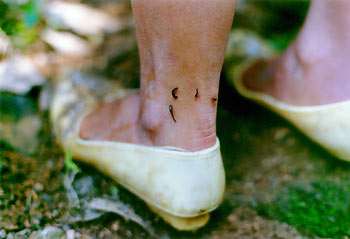 Freshwater Snails bite into a woman's ankle in a village in Hainan. [newsphoto.com.cn]