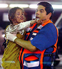 Shocked survivors, including crying children with blood-smeared faces, were led away from the scene. A paramedic cradled a little girl with a ponytail in his arms, and two others led away an older woman who had blood streaming down her face.