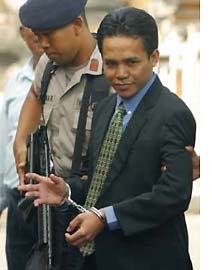 He also said he hesitated before taking part in the attack but could not defy his older brothers. Imron is the youngest of three brothers accused of playing central roles in the bombings that killed 202 people, mostly foreign holidaymakers, in Bali's famed Kuta beach strip. They are Mukhlas, the suspected commander of the Bali operation who has retracted all of his earlier statements to the authorities, and Amrozi, who has been sentenced to death in the only case where a verdict has been delivered so far. Amrozi said he said he was proud the attacks killed white people. In contrast, Imron said on Thursday: "What I have done was a mistake from a religious and nationalistic point of view. I think it was not a jihad bomb. What happened in Legian street was clearly not jihad." Wearing a black suit and tie -- again different from other Bali defendants who have appeared in traditional Muslim dress -- Imron said: "I ask forgiveness from the Balinese, the Indonesian government and people and also the Islamic community. My deeds have smeared Islam and troubled Muslims," he said. Imron's demeanour was a stark contrast to the swaggering Amrozi who gave two thumbs up and denounced Jews when the Denpasar district court sentenced him to death on August 7. It may be weeks before the court decides its verdict on Imron. The trial was adjourned until August 27 when three more witnesses take the stand. Indonesian authorities have said the Bali bombings were the workings of Jemaah Islamiah, a Southeast Asian militant Muslim group accused of plotting and carrying out attacks in the region. Jakarta has also blamed the group for bombing the JW Marriot Hotel in the Indonesian capital earlier this month. The suicide car-bomb attack at the lobby of the U.S-run hotel killed 12 people and wounded 150 others.