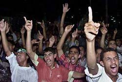 A spokesman for Palestinian security chief Mohammed Dahlan said security forces were working on the details of a Palestinian crackdown of militant groups, including putting together lists of people to be arrested, when word of Abu Shanab's killing arrived. The crackdown was then put on hold. The spokesman, Elias Zananiri, said the Palestinian government had told the United States, Egypt and Jordan of its plans for a crackdown, and believed the Israelis were also aware of the plan. "Everybody was put on alert and everybody was told we're heading to a showdown," he said. Palestinian Prime Minister Mahmoud Abbas denounced the missile strike as an "ugly crime," and his information minister, Nabil Amr, accused Israel of sabotaging the Palestinian Authority's attempts to rescue the truce and implement the road map. Israel's security Cabinet met late Wednesday to address the new volence. Israeli Justice Minister Yosef Lapid, a moderate, said he had proposed giving the Palestinian security forces three days to begin their clampdown, but was overruled. In that session, the ministers decided to press ahead with arrest raids and targeted killings — the Palestinians call them assassinations — until Palestinian security forces take action. The Israelis decided to act after giving the Palestinians more than 24 hours and seeing no sign of significant action planned against militants, a security source said on condition of anonymity. "We were waiting to see even just one Hamas arrest," the source said. By early Thursday, troops had raided three West Bank towns — Nablus, Jenin and Tulkarem — and killed a 16-year-old bystander in a search for fugitives in pool hall. The largest operation was carried out in Nablus, where armored vehicles sealed off the old city, or Casbah, as troops searched homes and took over several buildings, suggesting a longer stay. The military said it found a bomb lab in Nablus and arrested more than a dozen Palestinians. "The Palestinians have to take a strategic decision," said Israeli Foreign Minister Silvan Shalom. "Are they willing to fight terrorism? Are they willing to fulfill their commitments in the road map to break up the terror infrastructure? ... When they don't do this, we have no choice but to do it instead." After the truce declaration, Israel had scaled back raids and suspended targeted killings in an apparent effort to avoid being blamed for a collapse of the road map. At the time, the United States showed understanding for Abbas' plea for more time to handle the militants without force, since the truce initially led to a sharp decline in violence. Israel was deeply suspicious of the truce from the start, saying it was a ploy to win time and allow terror cells to recover from relentless Israeli strikes. The Israeli military noted Thursday that 25 civilians, including Israelis, a Bulgarian worker and five Americans, were killed and 160 others wounded in attacks in the past two months, before the militants formally abandoned the cease-fire Thursday.