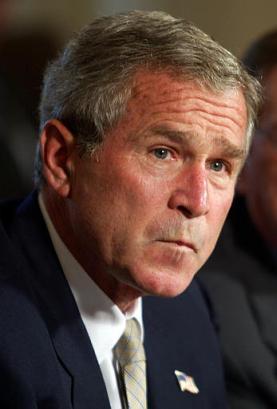 President Bush listens to a reporter's question in the Cabinet Room of the White House Wednesday, Sept. 17, 2003 in Washington. President Bush said Wednesday there is no evidence that Saddam Hussein was involved in the terrorist attacks of Sept. 11, 2001, disputing a notion held by a majority of Americans. [AP]