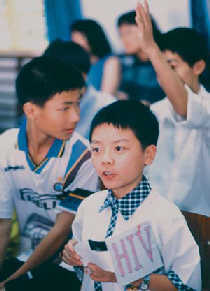 Middle school students play games designed to give them more knowledge about AIDS issues at Fushun County, Sichuan Province. [China Daily]