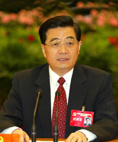 President Hu Jintao, also General Secretary of the Communist Party of China speaks at the meeting. [Xinhua]