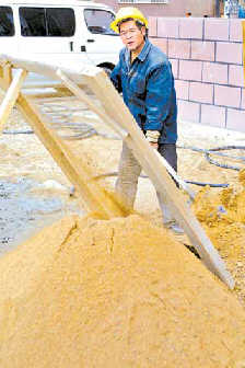 He seldom enjoys resting on weekends or holidays. There is a unanimous rule in construction companies: rest days mean no money for workers. Long years of working has left him with occupational diseases. The noise has damaged his hearing. His eyes frequently itch and shed tears because of the dust on building sites. He buys some cheap eye drops to treat his inflamed red eyes. Though he earns 40 yuan (US$4.83) a day, double the basic builders' payment, going to the hospital is still a luxury for him. "I am satisfied being an excavator driver. At least I am much safer than other builders," he said. Only the previous week, a worker lost a finger in an industrial accident. "The boss took him to hospital and paid the fees. That worker was lucky, even though he gets no compensation. Sometimes injured workers have been left without a cent to cover their medical costs in some construction companies." He now works for a hometown company, Jiangsu Nantong Construction company. "We feel safer working for someone from our hometown. I used to work for a boss from another province. He treated me badly, delaying my payment at the end of the year. And I don't dare to quarrel with him. " Wang feels a sense of pride working in the capital: "I am happy to see those beautiful buildings in the city. It is done by our hands, though nobody notices us. " An old hand Sun Zihai, 52, is probably the oldest construction worker in the Fang Xiu company. When the reporter caught up with him, he was sifting sand in the drizzle. This is his first experience working as a builder on a construction site after a long period searching for work. Before going to the capital, he used to plant cotton at home in Heze, Shandong province. That would hardly make ends meet. He said: "I am still in good physical condition. While I am healthy, I want to save something if possible." The old man was in fact rather grateful that the boss hired him. "It is very hard for a man of my age to find such a job. I am really lucky!" He works quite hard. After all, he wants the boss to hire him again for the next project and aims to impress. Indeed he feels nervous chatting to me: "I can't spend too much time talking with you. The boss will be not happy that I am wasting time. And I may lose the job." Lacking any skills, he does the physical work on the construction site. That includes digging, fastening scaffolding and moving bricks. He earns about 600 yuan (US$72) a month, which is a small fortune to him. "After the project is finished I will go to Tian'anmen square. I will visit the Chairman Mao Memorial. And I can take some gifts for my family." He smiles, his wrinkles unfolding like flowers on his face. The boss Work team boss Hu Shengyang won't let terrible living conditions deter him from his dream of getting rich on the back of Beijing's construction boom. The 37-year-old from Jurong in East China's Jiangsu heads up a construction team and has faced many of the trials and tribulations of those earning a hard living in that trade.