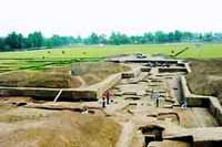 Stunning capital of Xia Dynasty unearthed ( 2003-11-11 10:26) (China.org.cn) Chinese archaeologists recently found a large-scale building foundation in Erlitou Ruins of Yanshi, central China's Henan Province, which belongs to the later period of Xia Dynasty. The discovery, the first of its kind in China, again excited the archaeological field after the heated discussion on the division of Xia and Shang dynasties. "The site causes great concern because it was founded at the key moment when the Xia Dynasty (c. 2100 BC - c. 1600 BC) was replaced by the Shang Dynasty (c. 1600 BC - c. 1100 BC)," said Dr. Xu Hong, head of the Erlitou Archaeological Team under the Chinese Academy of Social Sciences. "Was it built by people of the Xia or the Shang? Further excavation will help find the final resolution and provide new materials for periodization of the two dynasties." Erlitou Ruins, a new mystery
