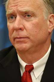 United Nations security chief Michael McCann speaks about the death of one of his officers at the United Nations headquarters Dec. 1, 2003, in New York.   [AP]