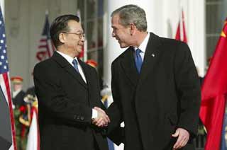 Playing down any prospect of war over the issue, he said, "The people of Taiwan are our blood brothers and sisters. So as long as even the slightest hope for peace exists, we will work to our utmost to strive for the peaceful process." "However, we firmly oppose the attempts by certain security forces in Taiwan to pursue Taiwan independence under the disguise of promoting democracy in an attempt to cut off Taiwan from the mainland." When Bush welcomed Wen to the White House on Tuesday, the president bluntly served notice that the United States opposes plans for a referendum in Taiwan that the administration views as a means of stoking pro-independence sentiment. Those comments were warmly greeted by Beijing. Despite the warning, Taiwan "President" Chen Shui-bian defended the plans to hold the referendum, which would demand that Beijing reduce its military threat against the island. On Sino-US trade Premier Wen Jiabao said China is committed to increasing imports of U.S. products to level the trade balance between the two nations. "We have demonstrated our utmost sincerity, and we are very much ready to increase our imports from your country," Wen said. He did add one caveat: "We hope the United States will open more to China, especially in the high-tech sector." US President Bush has faced increasing political pressure at home over the soaring trade deficits with China, which could reach $130 billion this year. Wen said his five-point trade plan was well received at the White House when he presented it to Bush this week and he hoped his five-point plan will help level the playing field.