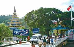 An official checkpoint at the Myanmar-Thai border. A bridge connects Tachileik, a town in Myanmar, with Mae Sai, the northern point of Thailand. Chinese women trafficked to Thailand mostly come over via Myanmar. [China Daily HK Edition]