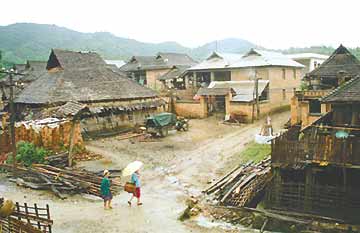 The Manlai Village in Menghai, Xishuangbanna, hometown of Yu Lian. Most ethnic Dai people still live in their traditional black-roofed houses. But those who returned from Thailand or other southeast Asian countries have built shining two-storey buildings with their fortunes earned abroad. [China Daily HK Edition]