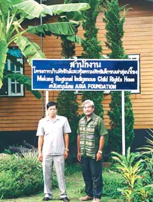 Sompop Jantraka (left), an award-winning Thai social worker in the field of child protection, at the Half-Way Home with a Thai official in charge of the shelter for victims of cross-border trafficking. [China Daily HK Edition]