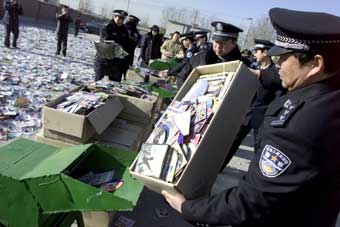 Incomplete statistics show that during 1995 and 2002, the country's copyright administrations smashed 197 million pieces of pirated products.