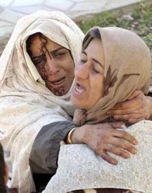Grieving injured Iranian women
