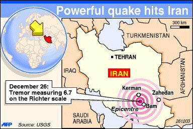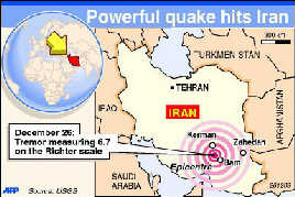 Major Iran quake kills thousands in ancient city ( 2003-12-27 01:52) (Agencies)