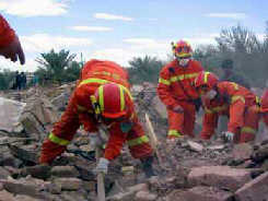 A Chinese rescue team searches for survivors in Bam Sunday. [Xinhua]