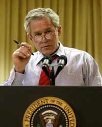 He also was renewing his push to steer federal money to religious groups that provide social services. Foreign policy was the opening theme of Bush's speech, and the president was expected to point to Libya's decision to renounce weapons of mass destruction and encourage other nations — North Korea and Iran, in particular — to follow suit. Last year's speech brought criticism over passages that asserted that Saddam Hussein was "assembling the world's most dangerous weapons" and cited British intelligence alleging that Iraq had sought to buy significant quantities of uranium from Africa. The administration later acknowledged it had no proof about uranium purchases. In nearly 10 months, nothing has been found in Iraq from a long and classified intelligence list of weapons of mass destruction. On the domestic front, Bush was to propose measures to curb the rising costs of health care, administration officials said. The package, drawing on plans already announced, includes tax incentives to make high-deductible, low-premium policies more attractive; health savings accounts, which allow workers to place money into accounts tax-free and withdraw it with no tax penalty for medical expenses; limits on medical-malpractice awards, and permission for businesses to pool their resources to get workers coverage.
