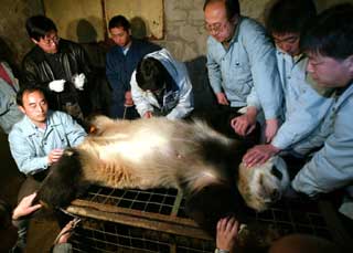 Artificial insemination for giant panda (newsphoto) Updated: 2004-03-21 15:14