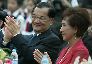 | Lien Chan and wife Lien Fang-yu applause on
