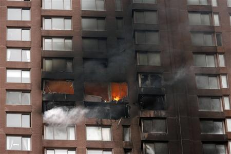 消防局發(fā)言人拉希米說,一架飛機沖進72大街一棟大樓。目擊者稱,這個沖撞導(dǎo)致了很大的聲響,還可以看到燃燒的碎片飛下來。火焰從大廈的窗口冒出。消防員正對大廈著火樓層進行澆水。近200名消防員達到現(xiàn)場參與救援,大火暫定為4級。