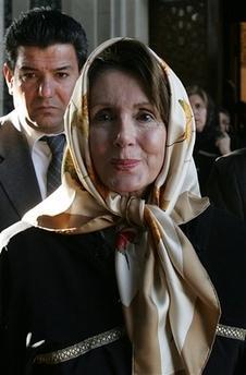 佩洛西3日逛大馬士革老城時的著裝引人注目