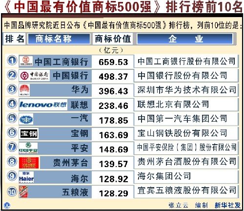 中國最有價值商標500強排行