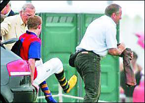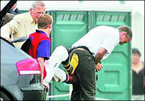 19日,慈善馬球比賽結(jié)束后,哈里累得一屁股坐在座位上。脫下右腳靴子后,他干脆踩著侍從的屁股,讓侍從抓住他的另一只腳幫忙脫鞋。也許是在比賽中太過(guò)賣力,哈里實(shí)在是沒(méi)有力氣脫下球靴。也許是侍從過(guò)于諂媚,哈里也樂(lè)得享受王子的特權(quán)。媒體擔(dān)心身邊有這樣奴顏卑膝的侍從,哈里會(huì)被嬌慣得更加無(wú)法無(wú)天。(塵塵)