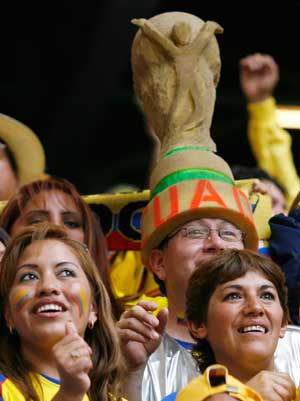 Ecuador fans smile before the Group A World Cup 2006 soccer match between