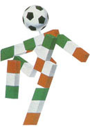 1990 Italy Ciao. A stick figure player with a football head and an Italian