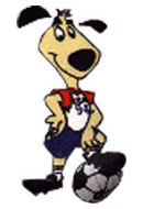 1994 United States Striker. A dog, wearing a red, white and blue football