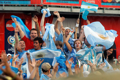 Soccer fans of Argentina react as they watch the World Cup 2006 soccer match between Argentina and Mexico at a so-called 'fan festival' in Leipzig June 24, 2006. (Reuters)
