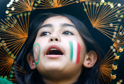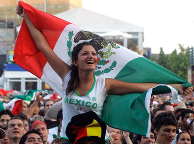 A soccer fan of Mexico holds her national flag as she watches the World Cup 2006 soccer match between Argentina and Mexico at a so-called 'fan festival' in Leipzig June 24, 2006. (Reuters)