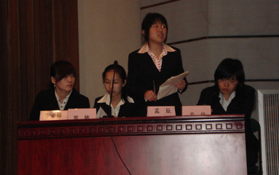 Law(法律是否應允許同性戀婚姻)”,北京外國語大學和南開大學代表隊分別作為正反方進行了激烈的辯論,結果南大代表隊惜敗。但在第二場與人民大學辯題為“Should