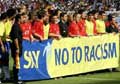 南非世界杯荷蘭對(duì)巴西的比賽開場前,隊(duì)員們打出了Say no to racism的標(biāo)語,這條標(biāo)語出現(xiàn)在足球賽場上不是第一次了。