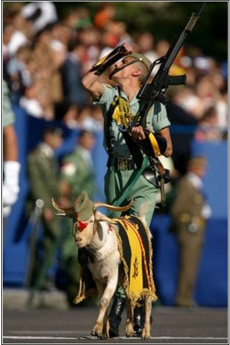 西班牙閱兵式上全副武裝的山羊。