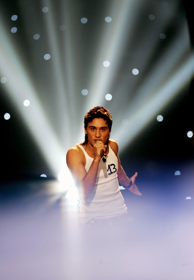 Russia's representative Dima Bilan performs the song "Never let you go" during the semi-final of the 2006 Eurovision song contest in Athens Olympic indoor arena May 18, 2006. Eurovision's final will take place on Saturday May 20 with representatives from 24 countries.(Reuters)