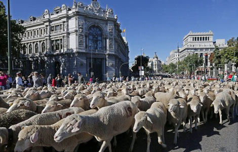 Migrant workers lead a sheep in the village of Krasnaya Polyana, a venue for the Sochi 2014 Winter Olympics, some 40 kilometres east from Sochi September 21, 2013. With just months to go before Russia is due to host the 2014 Winter Olympics in the Black Sea resort of Sochi, cranes still tower over muddy construction sites in the palm tree-lined city, as it tries to complete its multi-billion dollar transformation into a winter sports hub. [Photo/Agencies]