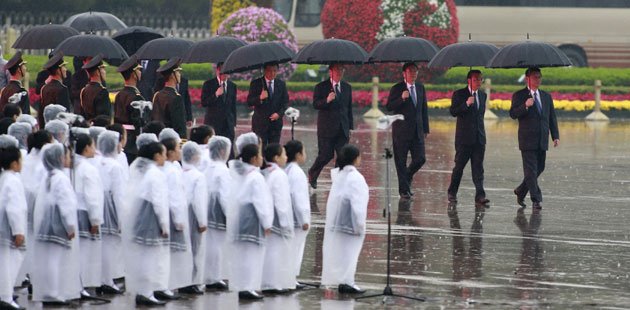 Rafael Nadal of Spain takes a break during his men's singles semifinal match against Tomas Berdych of the Czech Republic at the China Open tennis tournament in Beijing, Oct 5, 2013. [Photo/Agencies] |