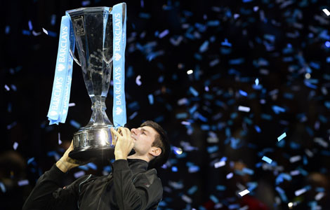 South Africa's Olympic champion Chad Le Clos competes in the men's 200m butterfly final during the FINA short course World Cup in Beijing, Nov 13, 2013. [Photo/Xinhua] |