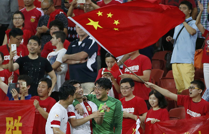 China beat Saudi Arabia 1-0 on Sunday and then defeated Uzbekistan 2-1 Wednesday, ensuring China the top place of Group B with one more game in hand.
