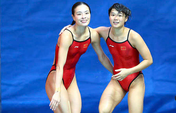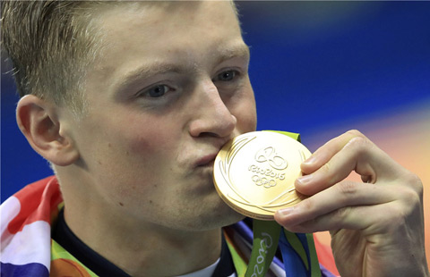 Sun Yang of China celebrates his win after men's 200m freestyle final in Rio de Janeiro, Brazil, August 8, 2016. The 24-year-old finished in 1 minute 44.65 seconds, 0.55sec ahead of South Africa's Chad le Clos with the USA's Conor Dwyer 0.58sec further back. Earlier, Sun has also gained a silver medal in the men's 400m freestyle final. It was China's first swimming gold medal of the Rio Games. [Photo/Agencies]